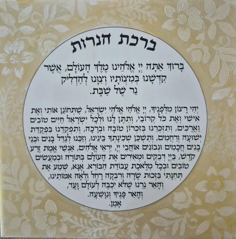 'ברכת הנרות' אריח לבן 20 על 20 מעוטר בטכניקה מיוחדת