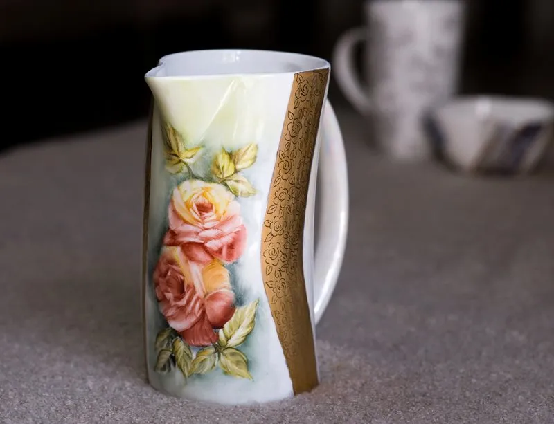 כלי לצמר גפן בעיטור פרחים נאיביים ולוסטר