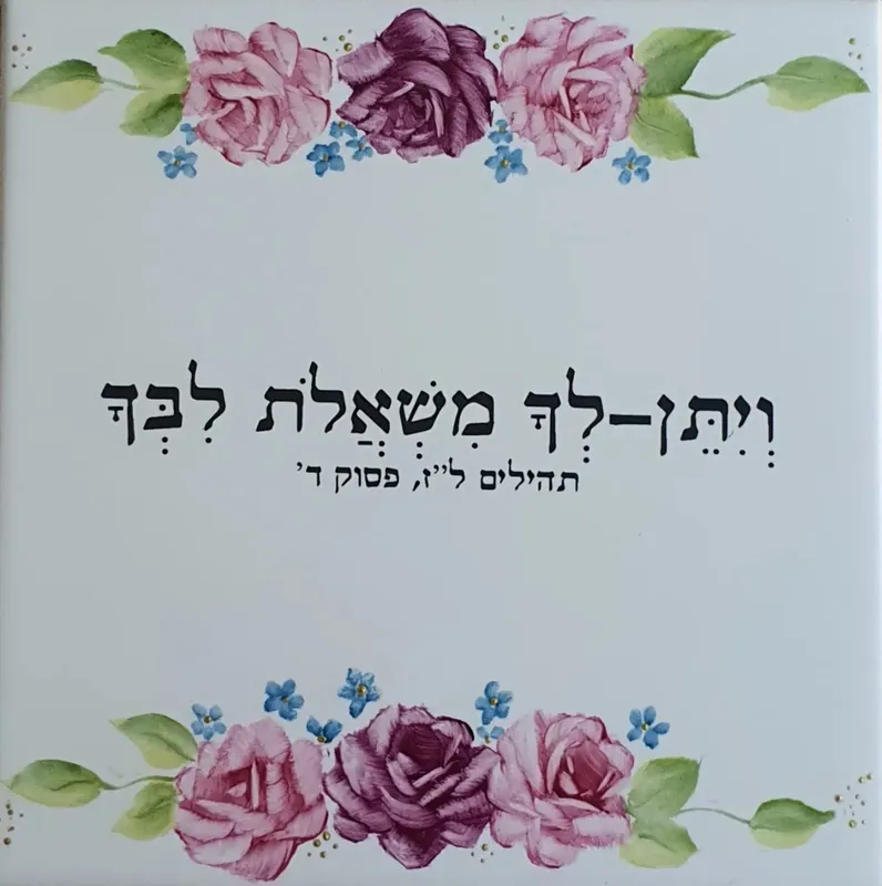 'ויתן לך משאלות ליבך' אריח לבן 15 על 15 עיטור בעבודת יד