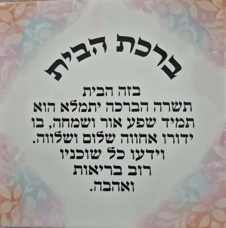 'ברכת הבית' אריח לבן 20 על 20 מעוטר בטכניקה מיוחדת