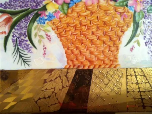 סלסלת פרחים עם פיתוחי זהב - טכניקה מיוחדת שלמדתי בשוויץ