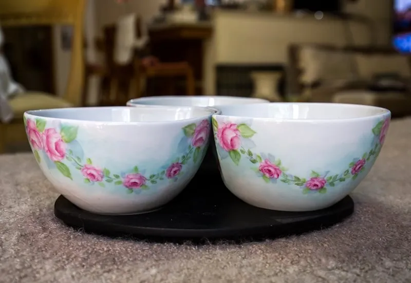 שילוב של 3 קעריות בעיטור עלים וורדים
