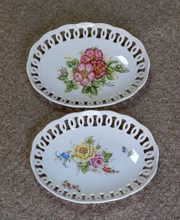 צלחות עם תחרה עם פרחים בסגנון Meisen